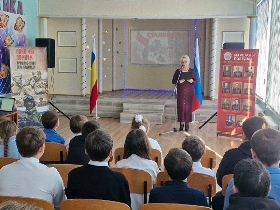 Программа была наполнена глубоким историческим и эмоциональным содержанием. Ведущая выступала с презентацией, в которой использовались редкие архивные кадры и карты сражений. Это позволило школьникам увидеть масштабную картину героической обороны города и победоносного наступления советских войск. Особый настрой мероприятию придало выступление Андрея Кириченко, который исполнил патриотические песни, воспевающие мужество и стойкость русского солдата. Его искреннее исполнение и проникновенные слова тронули как учеников, так и учителей. Программа напомнила всем о том, что Сталинград навсегда останется городом русской славы и символом переломного момента в войне. В завершение мероприятия участники почтили память погибших героев минутой молчания. Для проведения программы был использован специализированный транспорт — автоклуб.