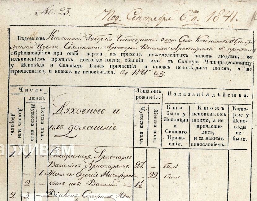 1841 год. Деревня Шульгино. Чебоксарский уезд. Никифор Зиновьевич Зинин.