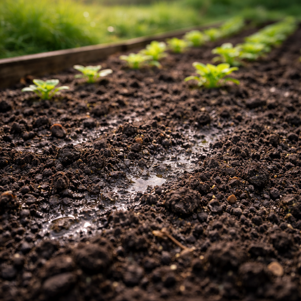 После дождя вода не впитывалась, а будто скатывалась по поверхности и уходила в стороны. Позже я поняла: пересохшая почва может становиться водоотталкивающей. Особенно если в ней мало