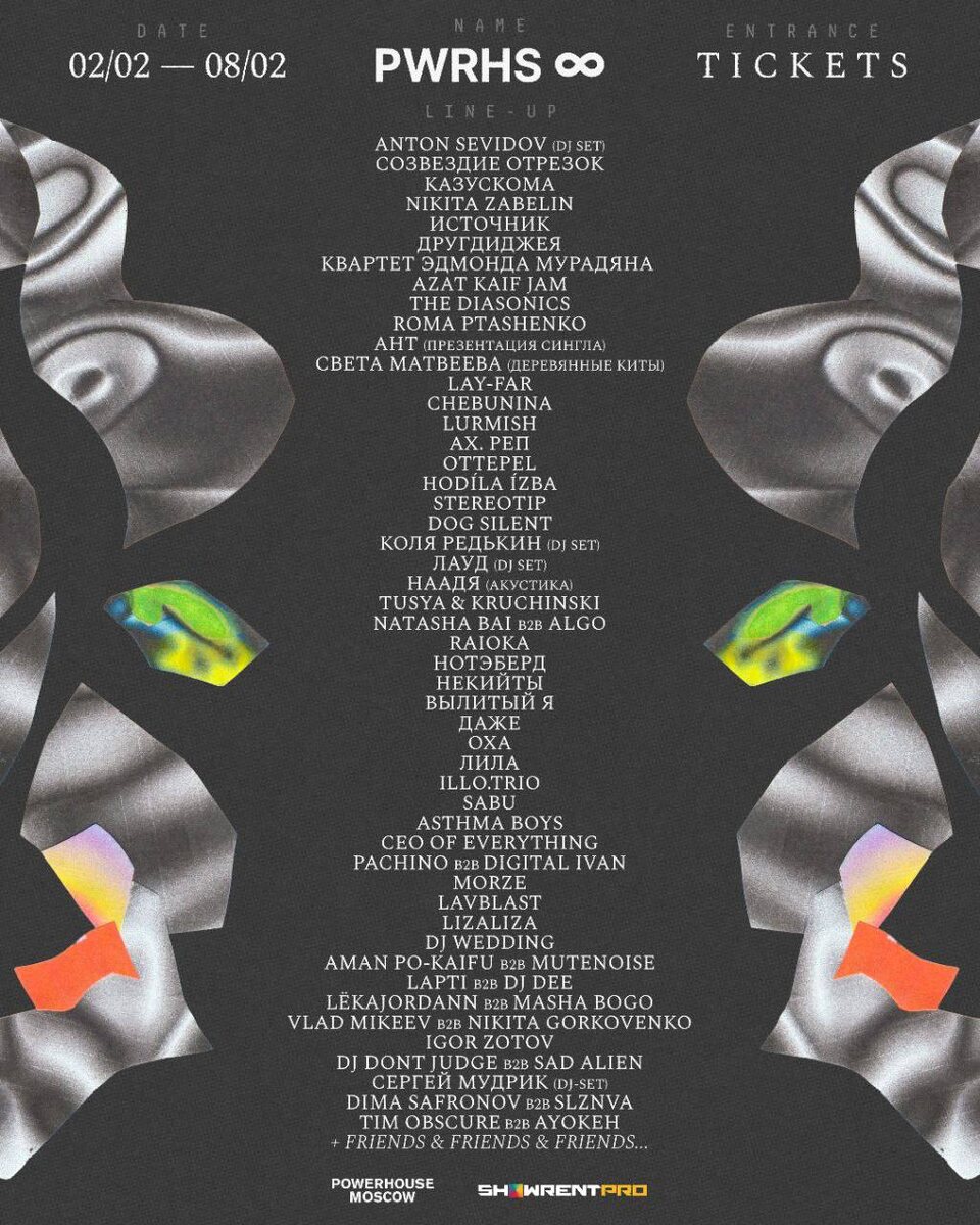 Сейчас в его стенах проходит большой семидневный фестиваль ♾️ в поддержку культового места силы на Таганке. Все средства пойдут на финансовую помощь и обеспечение дальнейшей жизни клуба. В лайнапе резиденты, друзья и артисты, для которых Powerhouse в разные периоды становился третьим местом и домом. Подробности в канале клуба @powerhousemoscow 🎫 Билеты на все дни и другие способы поддержки Дома Силы 📆 2-8 февраля 📍 Powerhouse, Москва, Гончарная ул., 7/4с1