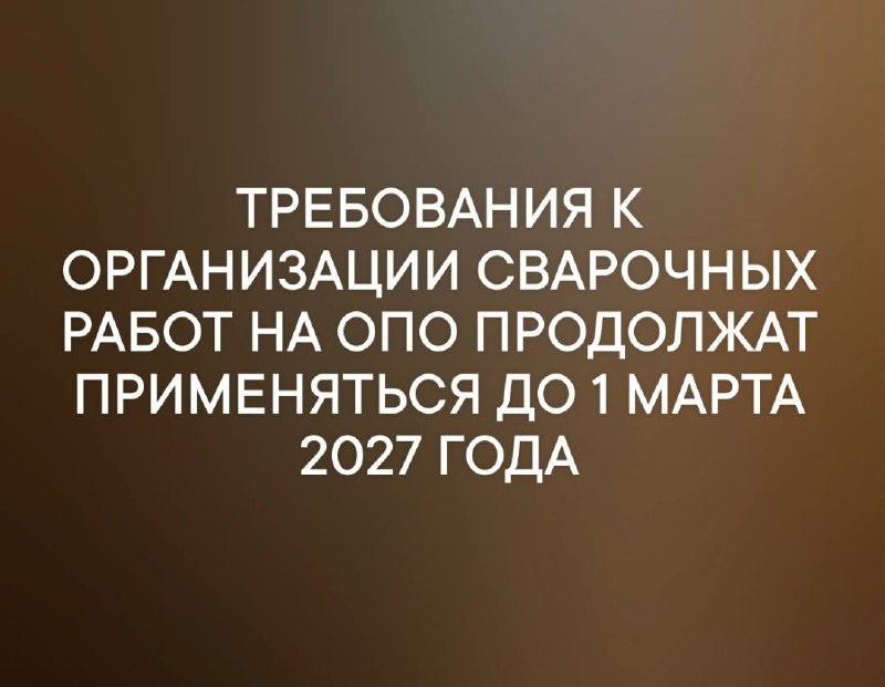 ТРЕБОВАНИЯ К ОРГАНИЗАЦИИ СВАРОЧНЫХ РАБОТ НА ОПО ПРОДОЛЖАТ ПРИМЕНЯТЬСЯ ДО 1 МАРТА 2027 ГОДА