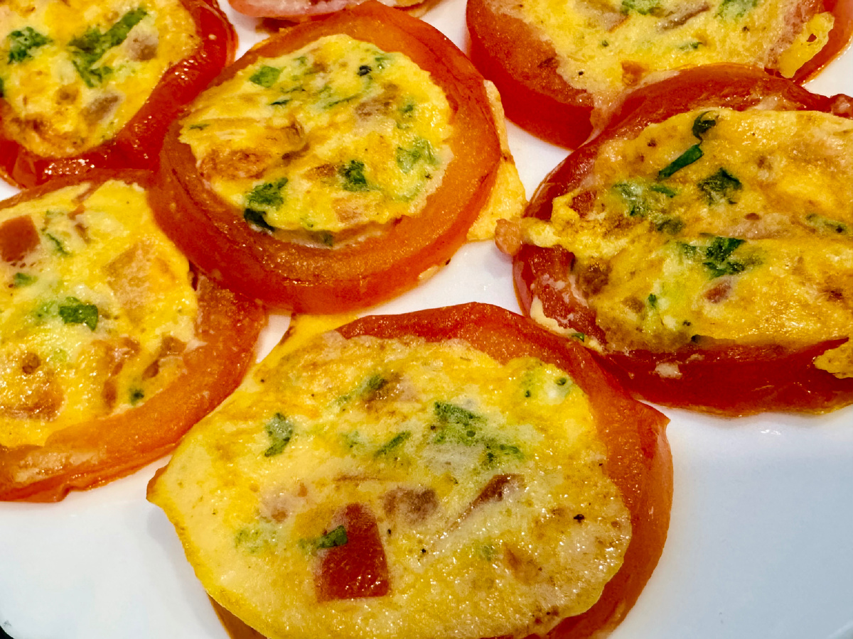 В отдельной миске яйца соединяем с нарезанными помидорами,