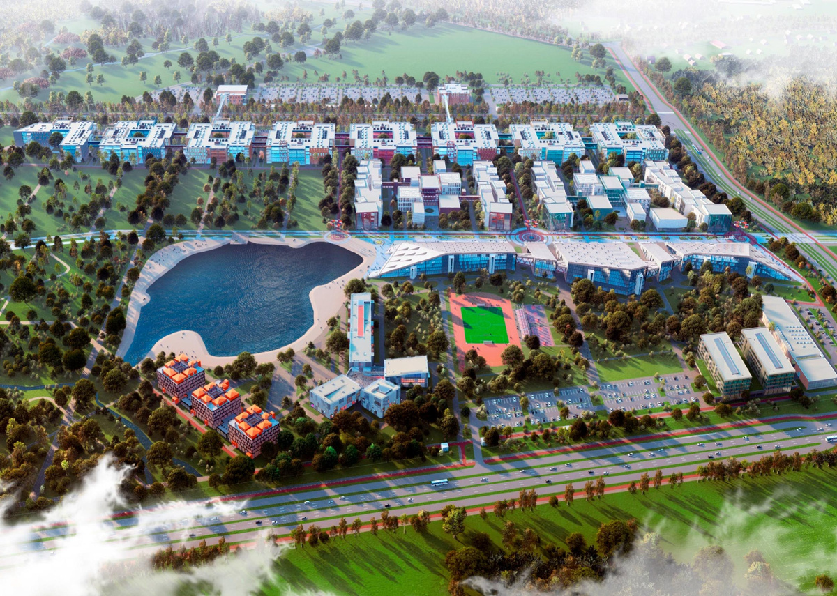 В зоне пешеходной доступности от кампуса будет располагаться научно-технологическая долина университета – инновационный научно-инжиниринговый комплекс, включающий в себя объекты, предназначенные для проведения междисциплинарной научно-исследовательской, инновационной и внедренческой деятельности с интеграцией в них образовательного процесса: технопарк, R&D лаборатории, опытные производства, центры инновационных услуг и образования.