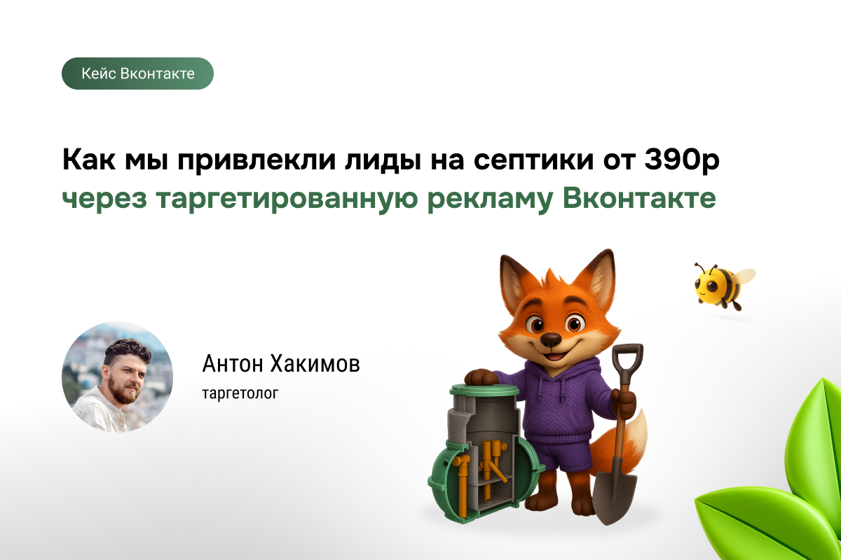 «Привет! Меня зовут Антон, я таргетолог. Специализируюсь на привлечении клиентов в сложном b2c-сегменте с длительным циклом принятия решения. В этом кейсе расскажу, как мы продвигали услуги по установке септиков в Ярославле. Несмотря на длительный период и «несезон», нам удалось получить 380 целевых заявок и вывести среднюю стоимость лида на уровень 396 рублей» Антон - таргетолог