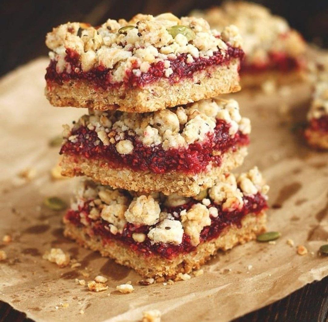 Ингредиенты: - 3-3,5 стакана муки; (я использовала овсяную) - 150 грамм растительного масла; - 0,5 стакана воды; - 0,5 стакана сахара или сахорозаменителя; - 0,5 ч.л соли; - 1,5 ч.л соды; - 3 ч.л уксуса; - варенье. Приготовление: В чашу с водой всыпаем сахар и соль, перемешиваем, чтобы сахар немного растворился. Добавляем масло и половину нормы муки, еще раз перемешиваем. Соду гасим уксусом и добавляем к массе, всыпаем оставшуюся муку и замешиваем некрутое тесто. Тесто делим примерно на 4 части. 1/4 часть кладем в пакет и отправляем в морозилку, а 3/4 также заворачиваем в пакет и помещаем в холодильник на 30-50 минут. Выкладываем большую часть теста на лист или в форму, делаем небольшие бортики, чтобы начинка не вытекала и распределяем сверху варенье. Натираем на крупной терке замороженное тесто и посыпаем пирог. *Можно тесто не замораживать, а просто мелко порвать руками на небольшие кусочки Выпекаем при температуре t=180°С, 35 минут. Даем остыть и режем на кусочки. Ангела за трапез