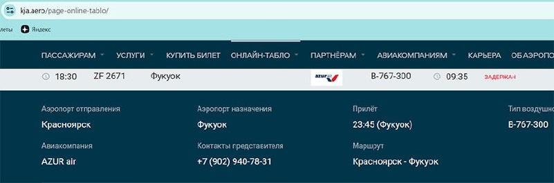 Уже более суток ждут вылета пассажиры рейса AZUR air ZF 2671 Красноярск – Фукуок. Boeing 767 должен был отправиться во Вьетнам еще вчера утром, но возникли «технические проблемы» локального характера. Перевозчик обещал устранить их в «ближайшее время», но процесс затянулся. Согласно онлайн-табло красноярского аэропорта, борт поднимется в воздух не ранее 18:30 по местному времени. «Привезли из отеля к 6 утра, люди (более 300 человек) опять прошли паспортный контроль и ждут в стерильной зоне. Все вещи в сломанном самолете. Представители авиакомпании ничего не знают, сказали только, что чинят самолет», – сообщила нам одна из подписчиц. Официальный комментарий AZUR air читайте на ТурДоме. @tourdom