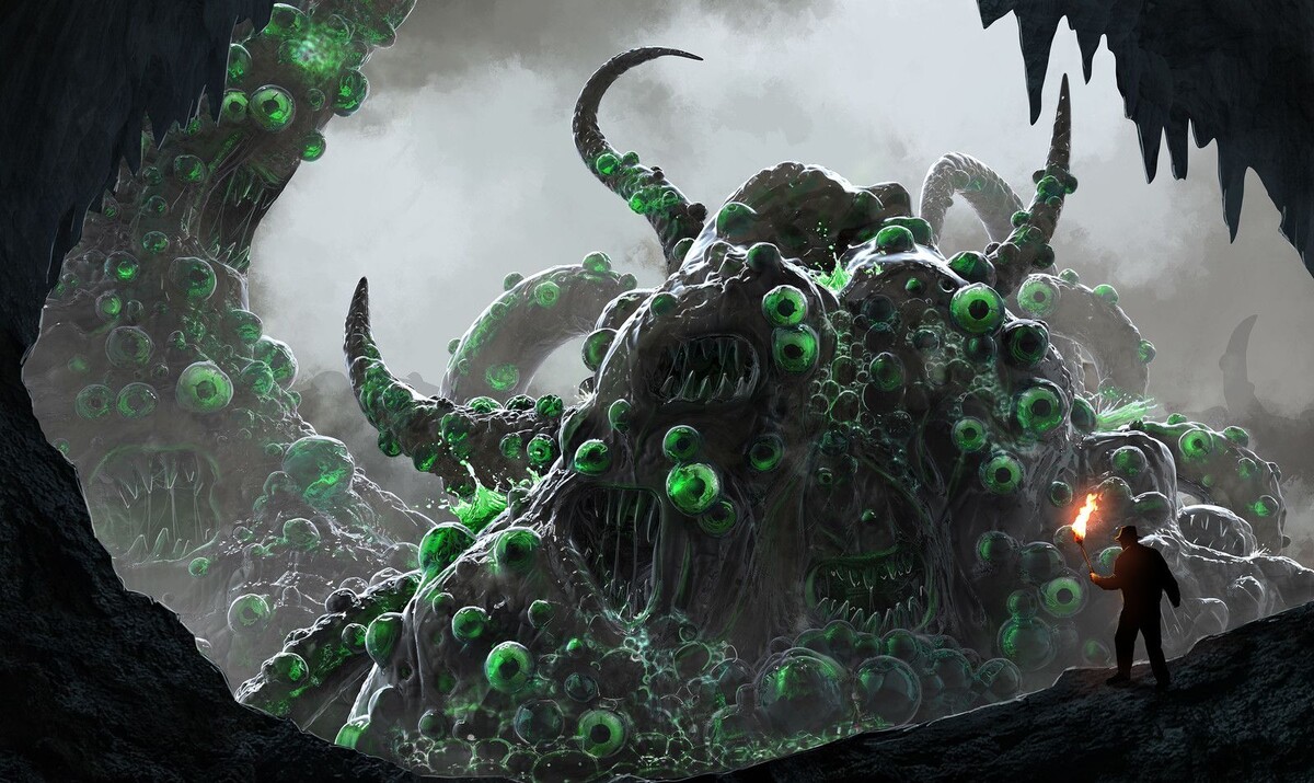 Создание, что появилось на свет путем использования божественной сущности Шаб-Ниггурат. И лучше бы оно не появлялось на свет никогда. Устойчивое к повреждению, кроме огня и холода, обладающее хорошей регенерацией, как и одним сознанием, заключенное во многом, или же многим сознанием, заключенным в одном.