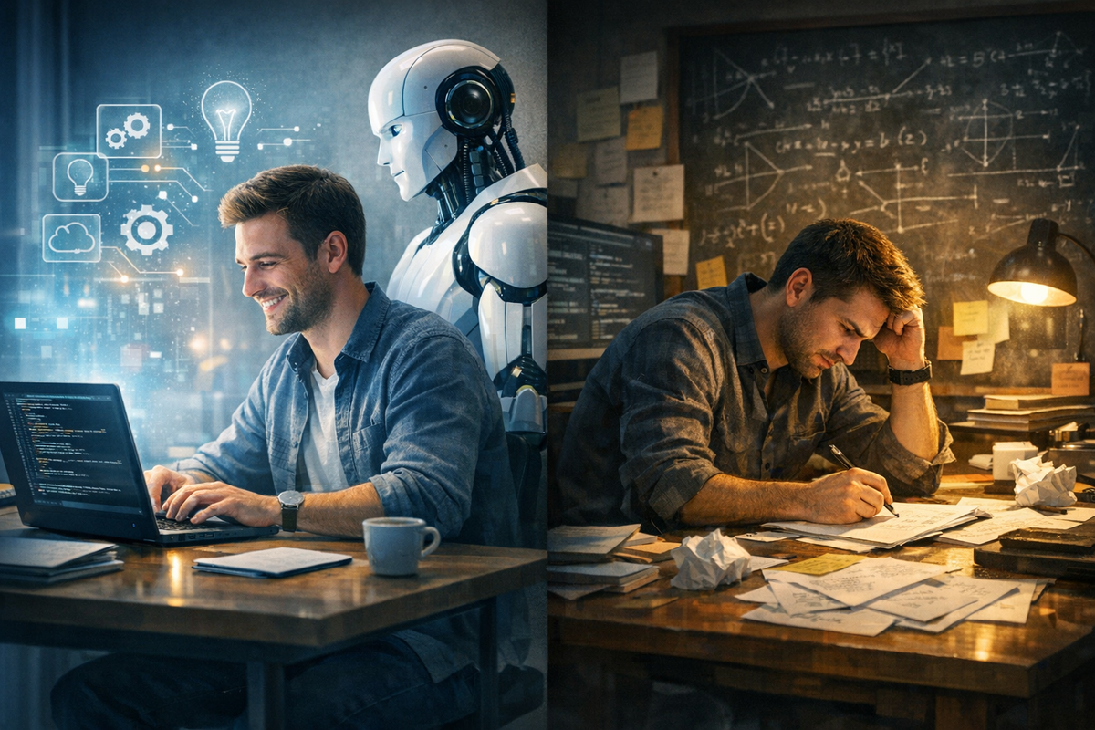 Есть ощущение, что ИИ пришёл не просто ускорять работу, а тихо переписал саму мотивацию интеллектуального труда. Не «что я решаю», а «зачем мне вообще напрягаться». В этом и заключается нерв статьи I miss thinking hard— не в страхе перед технологиями, а в утрате редкого, почти физического удовольствия от долгого, вязкого, сложного мышления. Автор очень точно ловит дихотомию, знакомую любому инженеру, исследователю или архитектору систем. С одной стороны — Создатель.