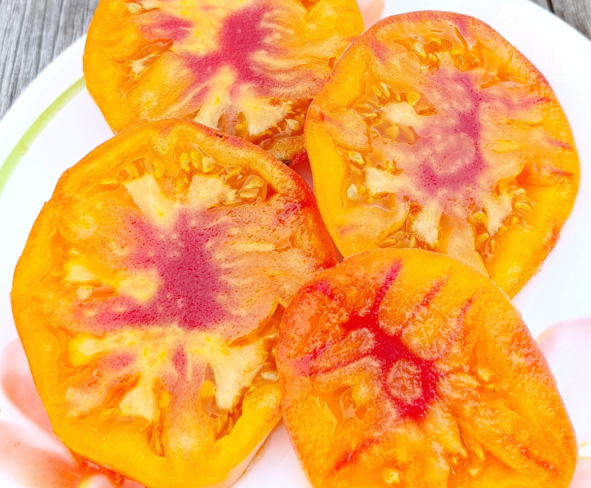 И опять я о них. Ни один мой сезон не обходится без восхищения биколорами. Я о красивейших томатах, на разрезе желто-красных, без которых не обходится ни одно лето. Для меня они самые-самые: и сладкие, и с нежной мякотью, и красивые, и вкусные и урожайные.