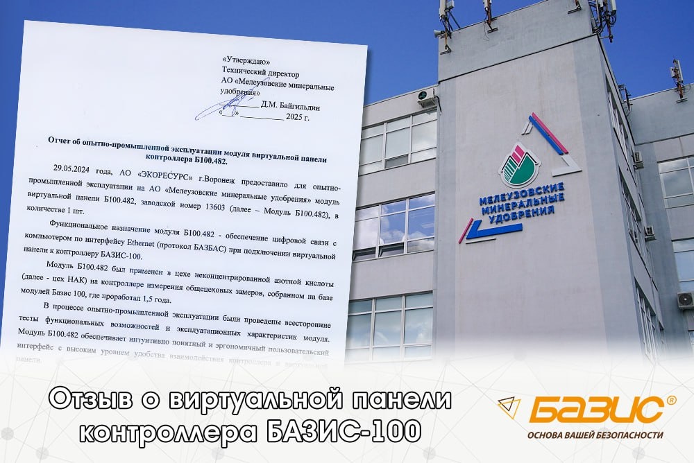 🌟 Получен отзыв на виртуальную панель контроллера БАЗИС-100 от АО «Мелеузовские минеральные удобрения»