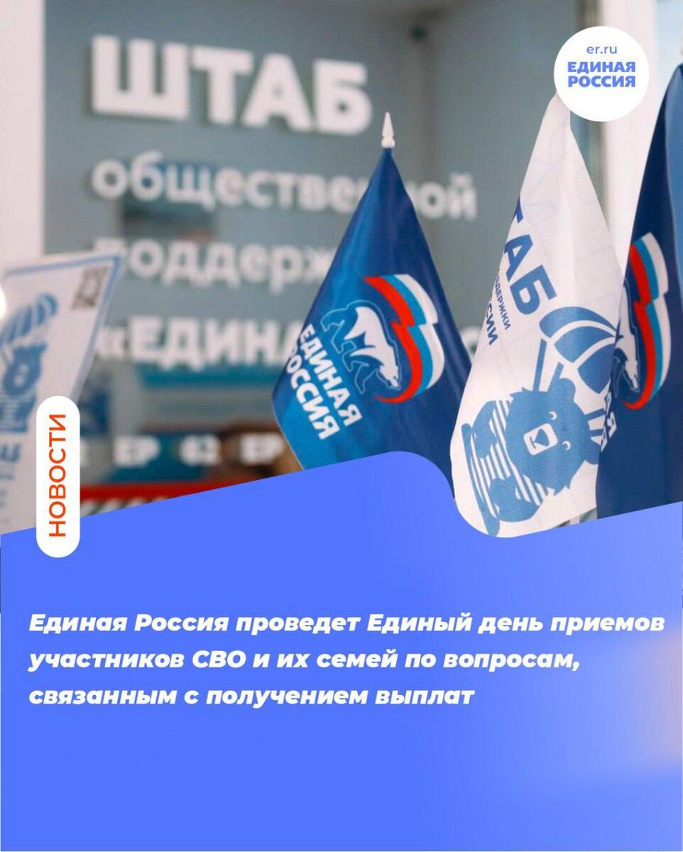 6 февраля Единая Россия проведет Единый день приемов участников СВО и их семей по вопросам, связанным с получением выплат