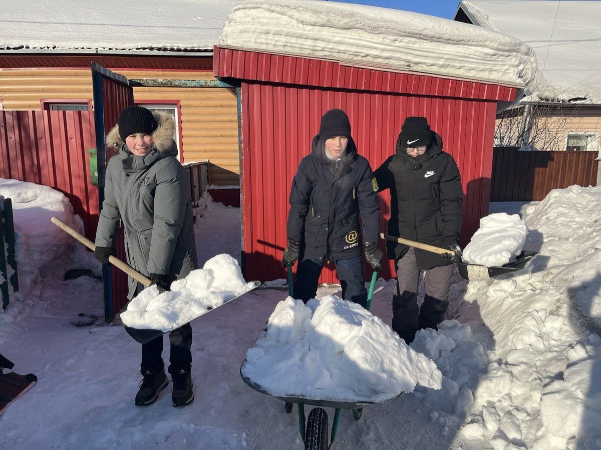 В Заводском районе Кемерова юные волонтёры помогают пенсионерам в уборке частных дворов от снега