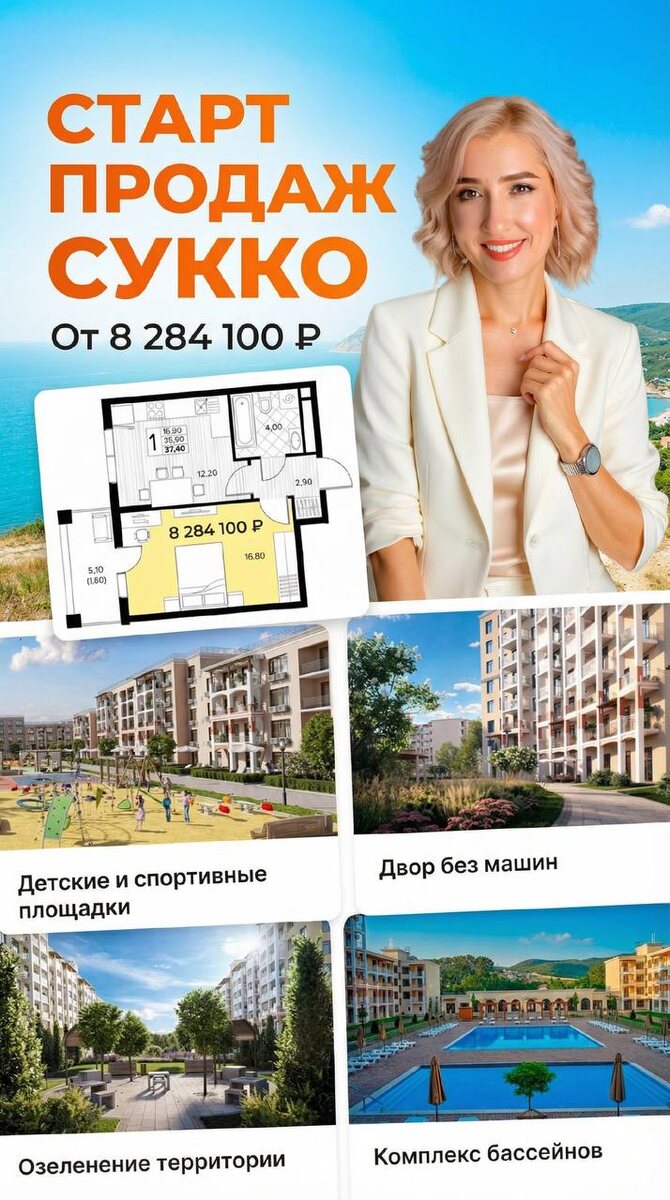 🌿🏡 Главное: - 12 корпусов, 4–8 этажей: долговечный монолит, аккуратные штукатурные фасады 🏗️🧱 - Дизайнерские входные группы и современные скоростные лифты 🎨🚀 - Классические планировки: от уютных 1-комн. до просторных 3-комн. квартир 🛋️📐 - Чистовая отделка, увеличенные окна и потолки до 2,7 м 🪟⬆️ Инфраструктура для жизни и отдыха: - Детские площадки 👶🛝 - Спортивные зоны: теннисный корт 🎾, поле для игр с мячом ⚽, тренажёры 🏋️, места для йоги 🧘, мини-гольф ⛳ - Бассейны с уютными зонами для релакса: шезлонги и зонтики 🏊♂️🛋️🌞 - Пешеходные дорожки и аллеи к центральной кольцевой прогулочной зоне 🚶♀️🌳 - Парковка для владельцев автомобилей 🚗 Локация: - Живописное, экологически чистое и тихое село Сукко 🌲 - В шаговой доступности: школа 🏫, магазины 🛍️, детский сад 👧, поликлиника 🏥, аптека 💊 - До центра Анапы — 40 минут транспортом 🕒🚌 Идеально для комфортной жизни и отдыха у моря 🌊✨ Нужны подробности, пишите мне.
