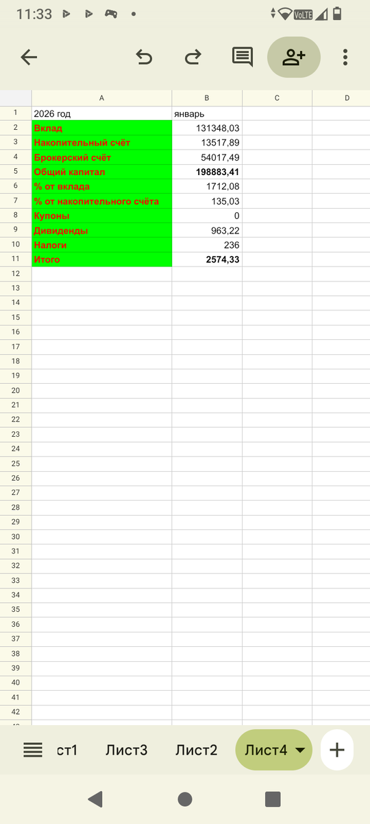 Всего за январь дивидендами получил 963,22₽ без учёта налогов.