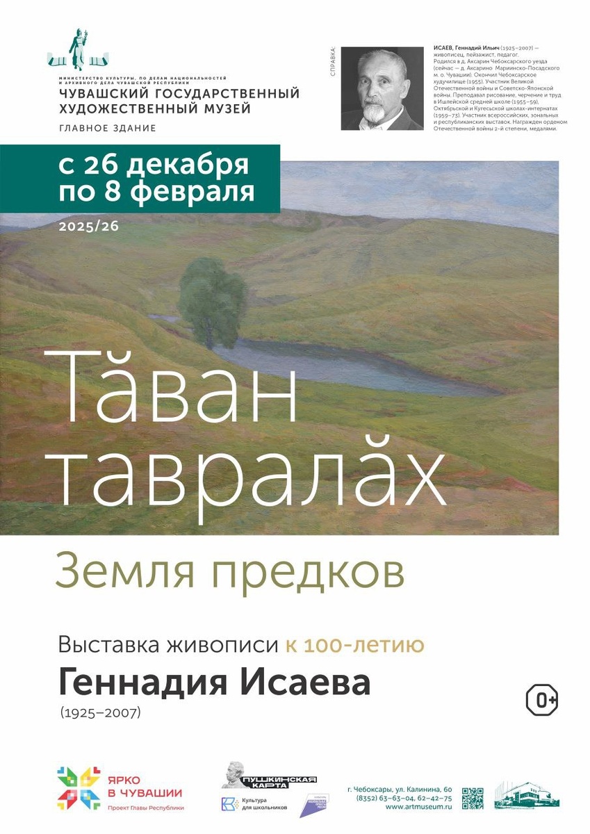 ! 🖼 А это значит, что последнюю неделю работают два выставочных проекта: «Земля предков /Тăван тавралăх» и «Привела тропа к родному дому...». 🔸Выставка «Земля предков» посвящена 100-летию со дня рождения художника Геннадия Ильича Исаева. В залах представлено более 100 произведений живописи из коллекции нашего музея, семьи художника и частных собраний. В своих картинах он воспевал красоту родной земли. ❗А еще, 5 февраля в 16:00, у вас есть шанс попасть на вечер памяти художника с участием народного артиста Чувашии Ивана Иванова, заслуженных работников культуры Чувашии Александра Васильева и Николая Кузьмина. Билеты 🔸Выставка «Привела тропа к родному дому...» приурочена к 100-летию заслуженного художника Чувашии Павла Козлова. Экспозиция - полная ретроспектива музейных произведений мастера. Его чебоксарские пейзажи полны тепла к уголкам и улочкам, мостикам, дворикам. Художник также откликался и на важные события современности. Билеты Доступна Пушкарта!