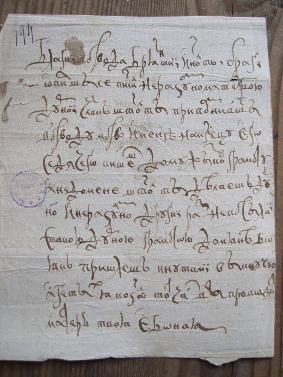 "Благие воевода брянский, ино ль ты браги опилшисе писал неразумно, матерь твою, дурной ты человек, што ль ты припомнивши воеводу моего имене намесцу его седячего пишешь до мужыков грамоту а не до мене, што ль ты делаешь, дурной и неразумной! Другий раз не посылай с такою дурною грамотою до мяне бо як пришлешь - кнутами выкнучю. А гетых я козал тот час выпроводить, матерь твоя еб***оная" Нашел в архивах и опубликовал генеалог Антон Ракитин