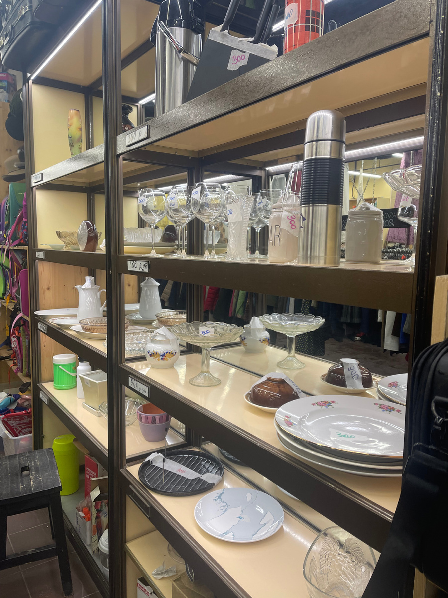 Меня больше интересовало стекло – вазочки, чашечки, подсвечники. Но, к сожалению, интересного добра там оказалось негусто. Хотя пару любопытных экземпляров все-таки нашла: супницу, тарелки (с клеймом ЗИК, Конаково, фарфор из ГДР). Любителям хрусталя тоже можно покопаться – вдруг откопают себе стопочку или стаканчик.