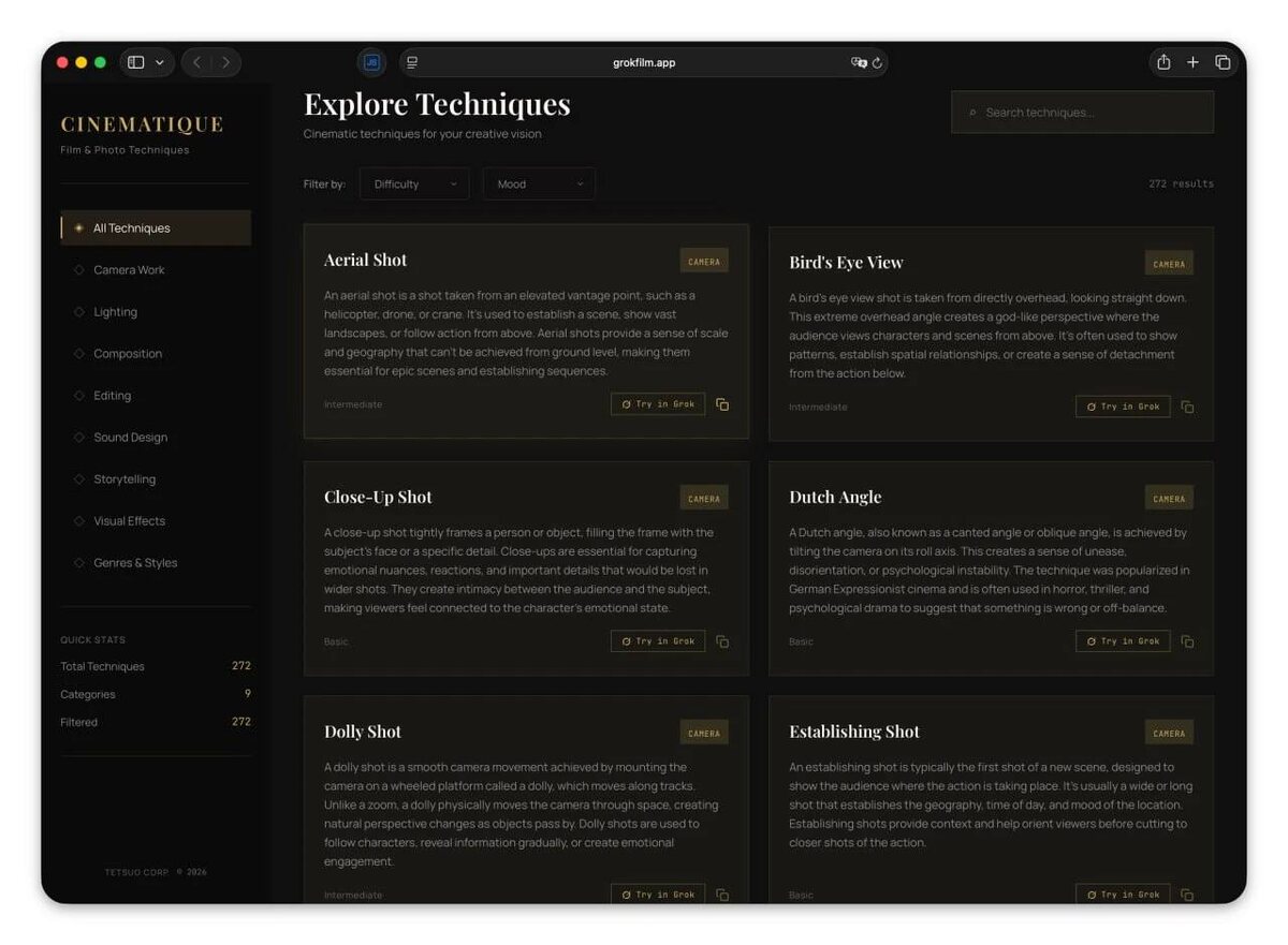 Сервис даёт сотни готовых промпт‑техник под киноязык: ракурсы, движения камеры, свет, настроение сцены — всё уже разложено по сложности и по типу (cinematic, horror, romantic, documentary и т.д.). Забираем справочник кинорежиссера по ссылке. #Service | Подписаться