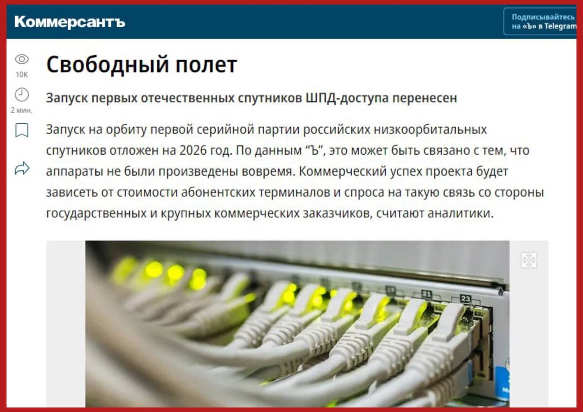 ‼️Запуск российского аналога Starlink отложили из-за проблем с производством спутников