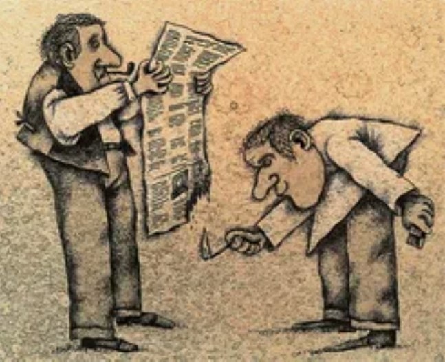 Алексей Толстой тоже что-то сделал. Тут Константин Федин и Валентин Стенич выскочили на двор и принялись разыскивать подходящий камень. Камня они не нашли, но нашли лопату. Этой лопатой Константин Федин съездил Ольге Форш по морде. Тогда Алексей Толстой разделся голым и, выйдя на Фонтанку, стал ржать по-лошадиному. Все говорили: «Вот ржет крупный современный писатель». И никто Алексея Толстого не тронул. Эту миниатюру Даниил Хармс написал по случаю первого съезда писателей. Он иронизировал не столько на конкретными людьми, сколько над культом «крупных писателей», всем этим пантеоном лояльных, признанных, обросших премиями и должностями. Поместив «титулованных» писателей в абсурдную ситуацию, Хармс высмеял литературную элиту и саму систему, которая заставляла преклоняться перед маститыми авторами вне зависимости от ценности их произведений. Иллюстрация Георгий Мурышкин