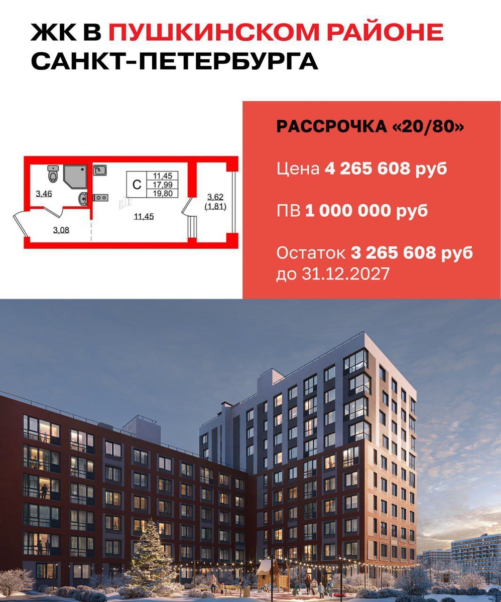 ! ✅Первый взнос 1 млн ✅Никаких промежуточных платежей ✅Просто внесите остаток до конца 2027 года или перейдите на ипотеку как только снизится ставка. В этом Жилом комплексе рассрочка без промежуточных платежей действует абсолютно на все квартиры: от студий до 3Е ккв ----- Закрытая территория с контролем доступа и видеонаблюдением. Невысокая комфортная этажность от 6 этажей. Возможность выбрать квартиру с чистовой отделкой и без. Собственная социальная и торговая инфраструктура. 📩 Ставьте + в комментариях или напишите админу @azbukadomaspb. Мы отправим вам планировки с ценами и всю необходимую информацию о жилом комплексе.