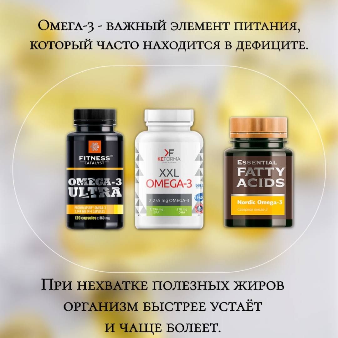 Полиненасыщенные жирные кислоты входят в состав клеточных мембран, а значит напрямую влияют на то, как работает весь организм. Омега-3 необходима: • для работы мозга, памяти и концентрации • для здоровья сосудов и нормального кровообращения • для гормонального баланса • для полноценной работы иммунной системы Иммунные клетки тоже состоят из жиров. Когда полезных жиров в рационе не хватает, защитные реакции организма ослабевают - человек начинает чаще болеть, дольше восстанавливаться и быстрее уставать. 📌Кроме того, Омега-3 снижает воспалительные процессы в организме, а это особенно важно в период сезонных вирусов и повышенных нагрузок. Качественная Омега-3 - это фундамент здоровья. Северная омега-3 https://ru.siberianhealth.com/ru/shop/catalog/product/500661/?referral=6126636 Омега-3 Ультра https://ru.siberianhealth.com/ru/shop/catalog/product/500484/?referral=6126636 Омега-3 XXL https://ru.siberianhealth.com/ru/shop/catalog/product/501605/?referral=6126636