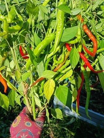 Перец слабоострый Чорбаджийский, Чорбаджийка, Чорбаджийска чушка, Болгария. Высота растения 0,5-0,8 м. Раннеспелый сорт. Плоды хоботовидные, красные, в технической спелости - салатового цвета, 18-22 см, изогнутые, поперечно-морщинистые. Это очень популярный сорт! В Болгарии он известен под названием Чорбаджийска чушка, а в Турции - Турецкая Змея. Его квасят и маринуют вместе с острыми перцами, добавляют в горячие вторые и первые блюда. Делают паприку. Перец на вкус не острый, не лютый, по вкусу напоминает болгарский сладкий перец, в зеленом виде съедается целиком, вместе с семенами. Подходит как столовая зелень, можно добавлять в салаты, супы и рагу. Когда переспевает - становится желто-красным, плотным, с грубоватой кожицей. Я из этого перца делала в 2025 году Ахоржак по-армянски или Армянская аджика. Продукты Томаты (перекрутить на мясорубке)- 6 кг Перец Чорбаджийский- 1 кг Соль, сахар по 3 ст.ложки Масло растительное - 300 мл Всё смешать и тушить 10-15 мин Далее добавить чеснок изм