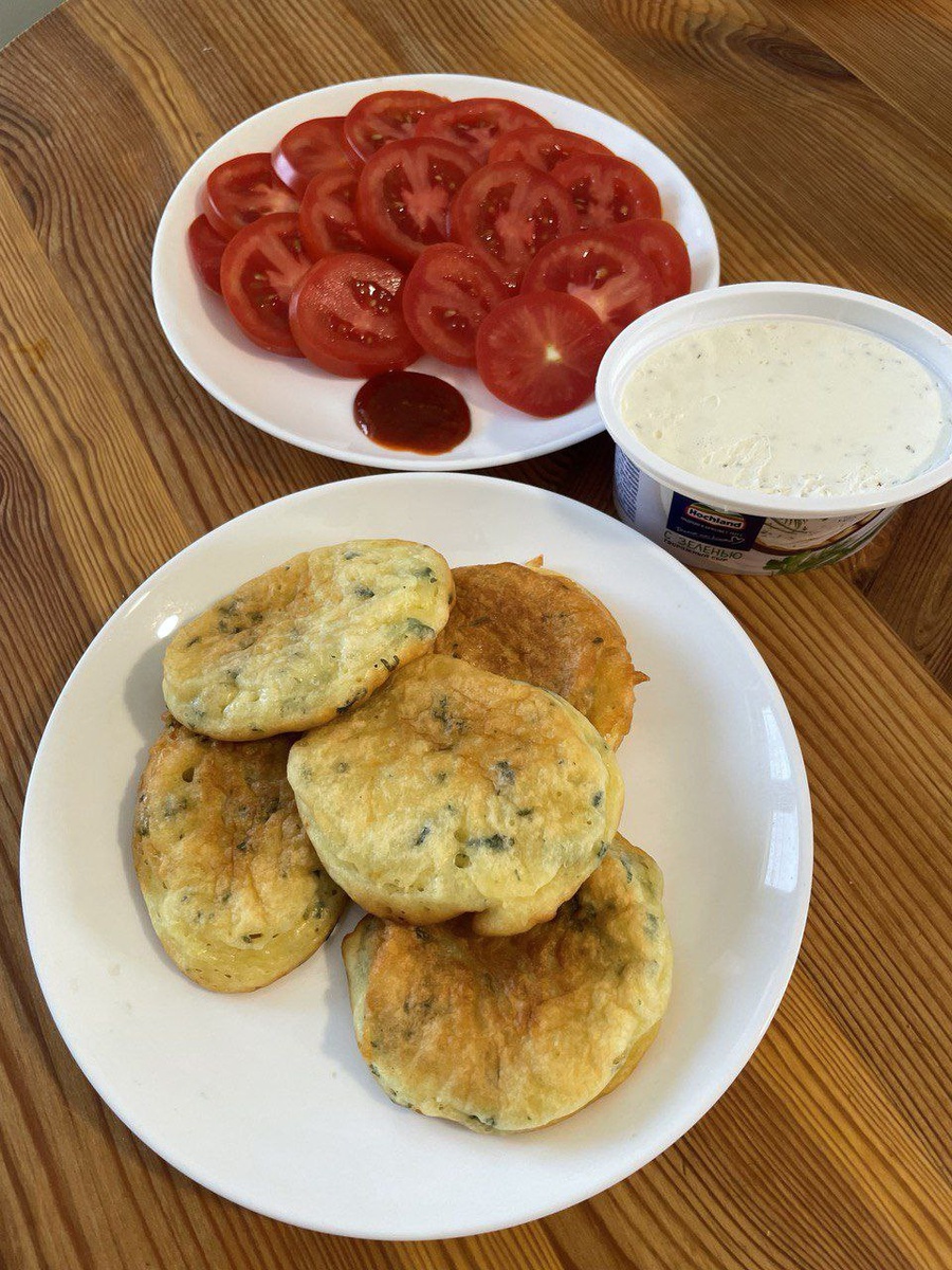 Хорошо на завтрак в морозный день. В обыкновенное тесто на оладьи( яйца, кефир, мука, разрыхлитель, соль, сахар) я добавила много зелени (у меня она замороженная) , сыр и получилось что-то новенькое и необычное. Вообще, если заморочиться, можно сварить горячий соус из помидор с аджикой. Но я обошлась готовым. И помидорки зимой смотрятся хорошо. Да и на вкус неплохие. Сорт сливка. Даже не ожидала. Зимой овощи часто бывают безвкусными. Было для кого постараться. Приезжал сын. Да, надо сказать, что без помощи я бы не смогла жить одна в доме. Всё время что-то случается. Нужно что-то открутить, прикрутить, подладить. Есть женщины в русских селеньях, которые всё могут сами. Но это не я. Я почти пятьдесят лет была ЗА МУЖЕМ. Как за каменной стеной. Я во многое даже не вникала. Как устроена система отопления, где какие коммуникации в доме, за всем следил Коля. Он иногда пытался мне что-то объяснить. Но я слушала в пол уха. Ну а сейчас нужно во всё вникать самой.
