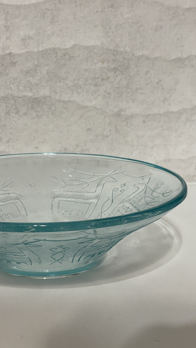 Но если ваза была довольно миниатюрная, то находки, что я покажу сегодня таковыми не являются. Вообще-то я стараюсь не покупать посуду, так как забочусь об эргономичном хранении и порядке. В моем доме каждая вещь имеет свое место и, чтобы что-то взять в шкафу, не нужно доставать из него половину содержимого:) Но в этот раз я не устояла, не смогла пройти мимо и принесла домой ТРИ салатника. Два поменьше и один большой. Все три довольно глубокие и объемные. Ничего подобного мне ранее не встречалось, а быть может, я просто не обращала внимания. Сегодня обратила... на свою голову:) Теперь надо решить, где будет их законное место. Итак, три салатника двух размеров из формованного стекла с отливом цвета морской волны и очень забавными орнаментами в виде стилизованных оленей и павлинов. На дне есть артикул, цена в копейках и маркировка в виде бутылки молока (?). Я не знаток подобных изделий, а беглый поиск результата не дал, поэтому сказать точно, кто именно производил эти милые тарелки или салатники не могу. Да и так ли это важно? Стекольных заводов по производству недорогой посуды в СССР было несметное количество. Меньше слов, больше дела. Давайте посмотрим.
