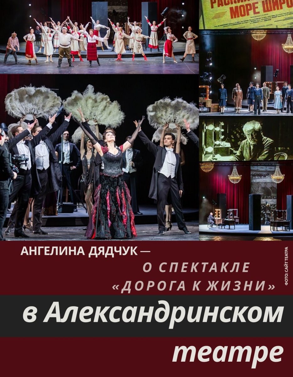 #Ангелина_Дядчук — о спектакле «Дорога к жизни» в Александринском театре: 27 января в Александринском театре показали спектакль-концерт «Дорога к жизни», приуроченный к 82-й годовщине со дня полного освобождения Ленинграда от фашистской блокады. Спектакль был создан совместными усилиями Александринского театра и Театра музыкальной комедии, чьи судьбы оказались тесно связаны в блокадное время. Действие начинается с перечисления сухих фактов, которые транслируются на экран: 14 августа 1941 года Академический театр драмы им. А.С. Пушкина сыграл последний спектакль перед эвакуацией, 20 августа был эвакуирован в Новосибирск, а 25 декабря на его сцене в Ленинграде впервые сыграл спектакль Театр музыкальной комедии... Поворотный круг становится ритмообразующим элементом: приходя в движение, он словно отматывает время назад и возвращает нас в прошлое. Отрывки из оперетт, сыгранных во время блокады, — «Сильва», «Марица», «Перикола», «Принцесса цирка», «Свадьба в Малиновке», «Сорочинская ярма