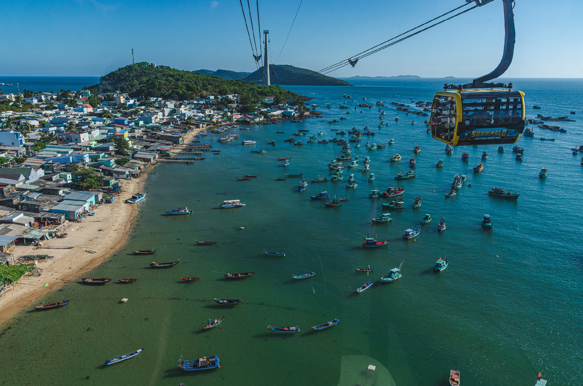 Длина канатной дороги "Хон Тхом" составляет 7899,9 м. Эта канатка соединяет южный город Фукуока Ан Тхой и остров Хон Тхом, который часто называют Ананасовым островом.