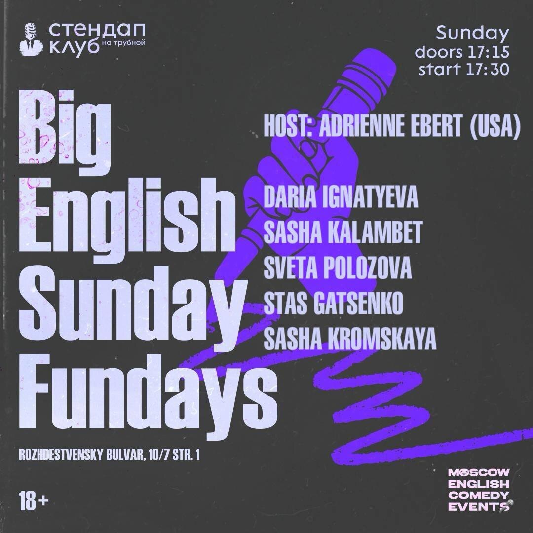 ❕ Our hit event Big English Sunday Fundays at Stand Up Club on Trubnaya is here with a prime selection of hip, young, and modern talent from the Russian comedy scene 💅 Daria Ignatyeva 👧🏼 says she's a typical Russian girl but we know she's so much more Sasha Kalambet 💉 is great with children and heroin jokes Sveta Polozova ⛷️ is a world traveler, skier, and also proficient in French Stas Gatsenko 🎣 is a charming gentleman and a great catch Sasha Kromskaya 🏋🏻♂️ isn't impressed by gym rats or body builders and our host Adrienne Ebert (USA) 🥺 isn't, either Stand Up Club на Трубной 🕢Time: 17:30-18:55 🗺️Address: Rozhdestvensky Blvd, 10/7 С1 🎟Entrance: FREE. 💸 Donations for the show are welcome, one drink minimum required 🍸 🔗Click to reserve seats here!