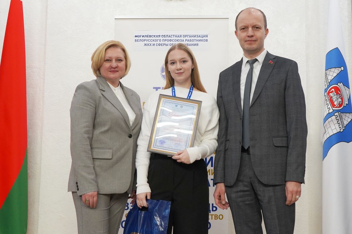 В Могилёве конкурсной комиссией подведены итоги областного этапа Республиканского конкурса “Лучший молодой работник ЖКХ”. Победителем признана Александра АСТАПЕНКО – специалист по работе с клиентами службы “Контакт-центр 115” коммунального унитарного предприятия “Могилёвский областной центр информационных систем”. Призёрами областного этапа стали Александра СВИСЛЁНОК, мастер ЖЭУ-8 КУП “ЖРЭУ Первомайского района г. Бобруйска” (II место) и Кристина НЕМЦЕВА, ведущий специалист по идеологической работе и социальным вопросам КУП “ЖРЭУ Ленинского района г. Могилёва” (III место). В пятёрку сильнейших также вошли Алина ЧЕРЕПКО, начальник технического отдела Могилёвского ГКУП “Управление коммунальных предприятий” и Дарья МАРТЫНЕНКО, бухгалтер Чаусского УКП “Жилкомхоз”. – В организациях отрасли уделяется большое внимание работе с молодёжью, – рассказал председатель Могилёвской областной организации Белорусского профсоюза работников ЖКХ и сферы обслуживания Павел ЖУЙКОВ. – При трудоустройстве про
