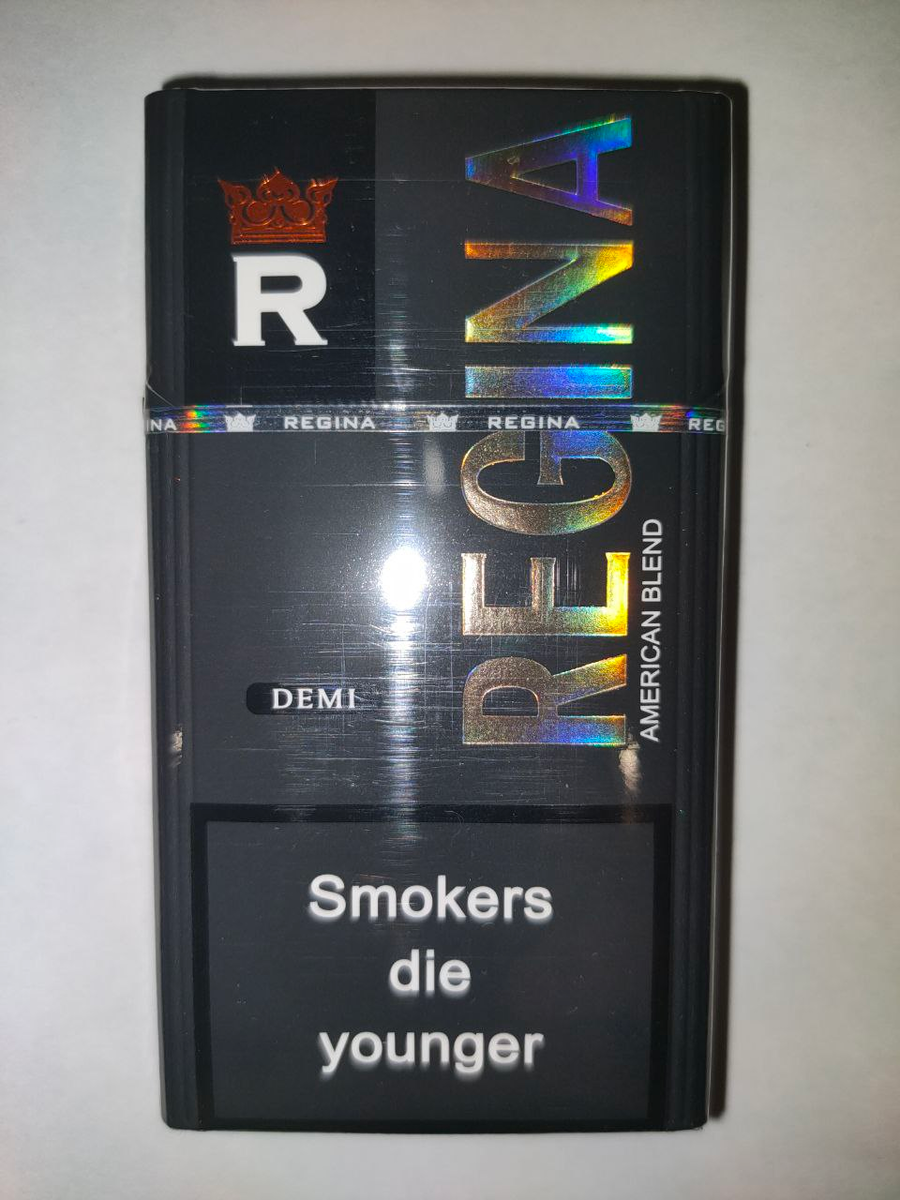 🖐 Всем привет! Как и договаривались в чате, делюсь обзором на REGINA Compact чёрные. Пачка выглядит превосходно: матовая, с глянцевыми вырезками, перфорированным названием и даже голографическим принтом — тактильно очень приятная (см. фото). По сигарете: Заявлено: 7 мг смолы / 0,6 мг никотина — по ощущениям это абсолютно соответствует. Табак ориентальный с добавлением Virginia Red, ферментация хорошая.