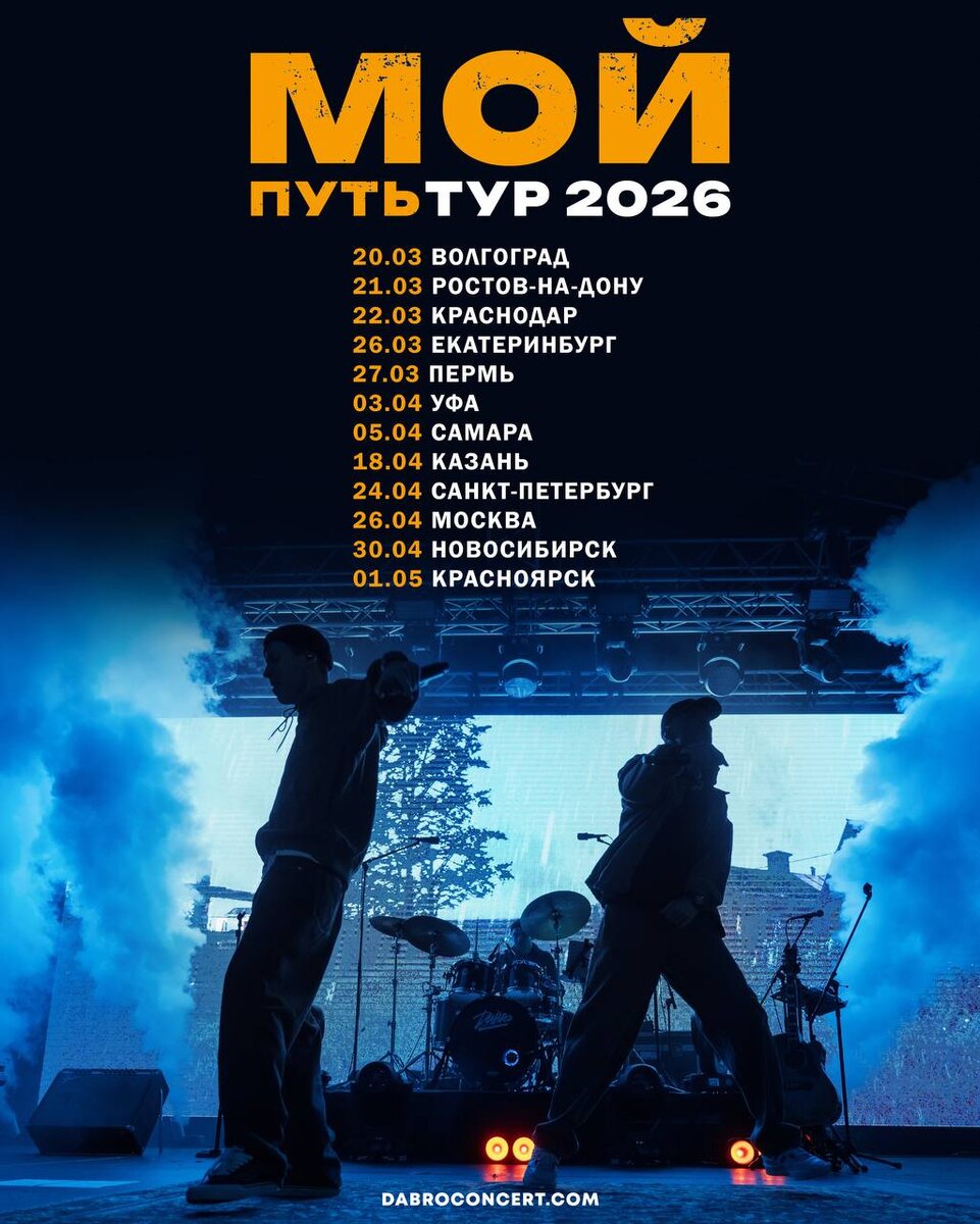 ! Изменения в графике тура. Псков, Смоленск и Великие Луки отменены. Организаторы не выполняют свои обязательства и на протяжении нескольких месяцев ситуация не меняется. Проведение концертов невозможно. Сожалеем, что на таком уровне ещё продолжаем сталкиваться с подобными ситуациями. Кто проводит большие туры, поймёт. По вопросам возврата билетов обращайтесь в места их приобретения. Хорошие новости - добавлены Новосибирск и Красноярск. Локомотив Арена и Гранд Холл Сибирь - одни из лучших площадок, где запланированы концерты! dabroconcert.com