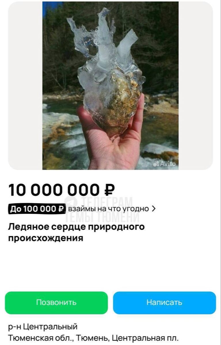 😆 В Тюмени выставили на продажу «ледяное сердце» за 10 миллионов рублей.
