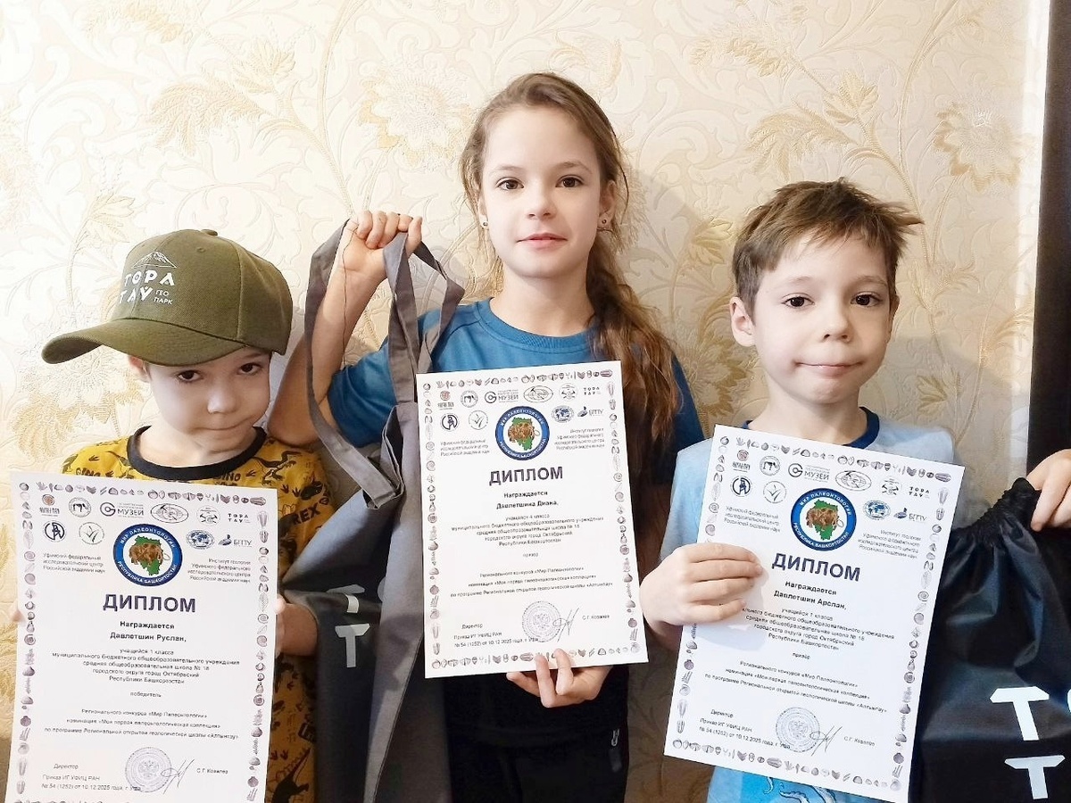 Учащиеся школы № 18 Диана, Арслан и Руслан Давлетшины стали победителями и призёрами регионального конкурса «Мир Палеонтологии» в номинации «Моя первая палеонтологическая коллекция». Ученица 4б класса и её братья‑первоклассники приняли участие в конкурсе по программе региональной открытой геологической школы «Алтынтау», который проходил в онлайн‑формате. Ребята давно интересуются палеонтологией и даже собирают домашнюю коллекцию древностей и окаменелостей. Для состязания Диана, Арслан и Руслан разделили находки на собственные коллекции и так их представили на суд жюри. По итогам Руслан стал победителем, а Арслан и Диана — призёрами. О юных палеонтологах Давлетшиных «Октябрьский нефтяник» уже рассказывал в материале «Зуб дают» (№ 89 от 27.07.24): на школьной клумбе ребята обнаружили зуб мамонта, который передали в Октябрьский историко‑краеведческий музей им. А. П. Шокурова. Автор: Анастасия Аверина