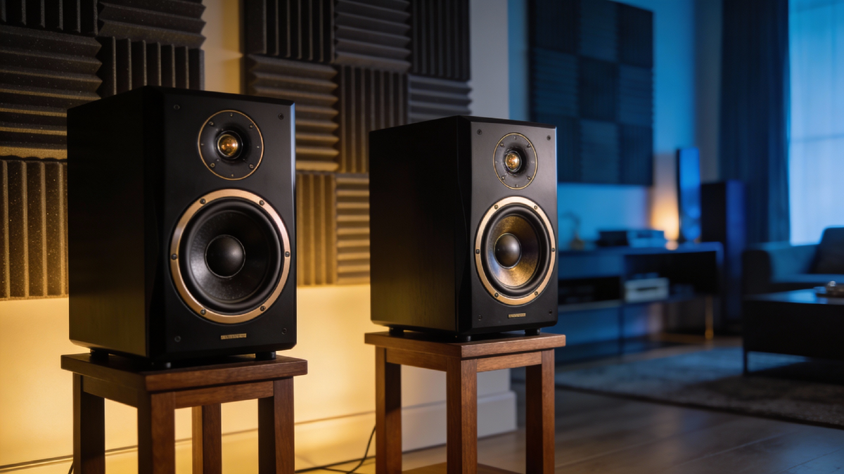 Полочная акустика — старт в мир серьёзного звука. Bowers & Wilkins 607 S3 за 70-80 тысяч рублей — компактные колонки с титановым твитером 25 мм и кевларовым мидвуфером. Играют детально, высокие частоты искрятся, вокал выдвинут вперёд. Нужен усилитель мощностью от 50 Вт на канал, расстояние между колонками минимум 180 см, от задней стены — 50 см. Поставишь правильно — получишь стереопанораму, где каждый инструмент занимает своё место в пространстве.