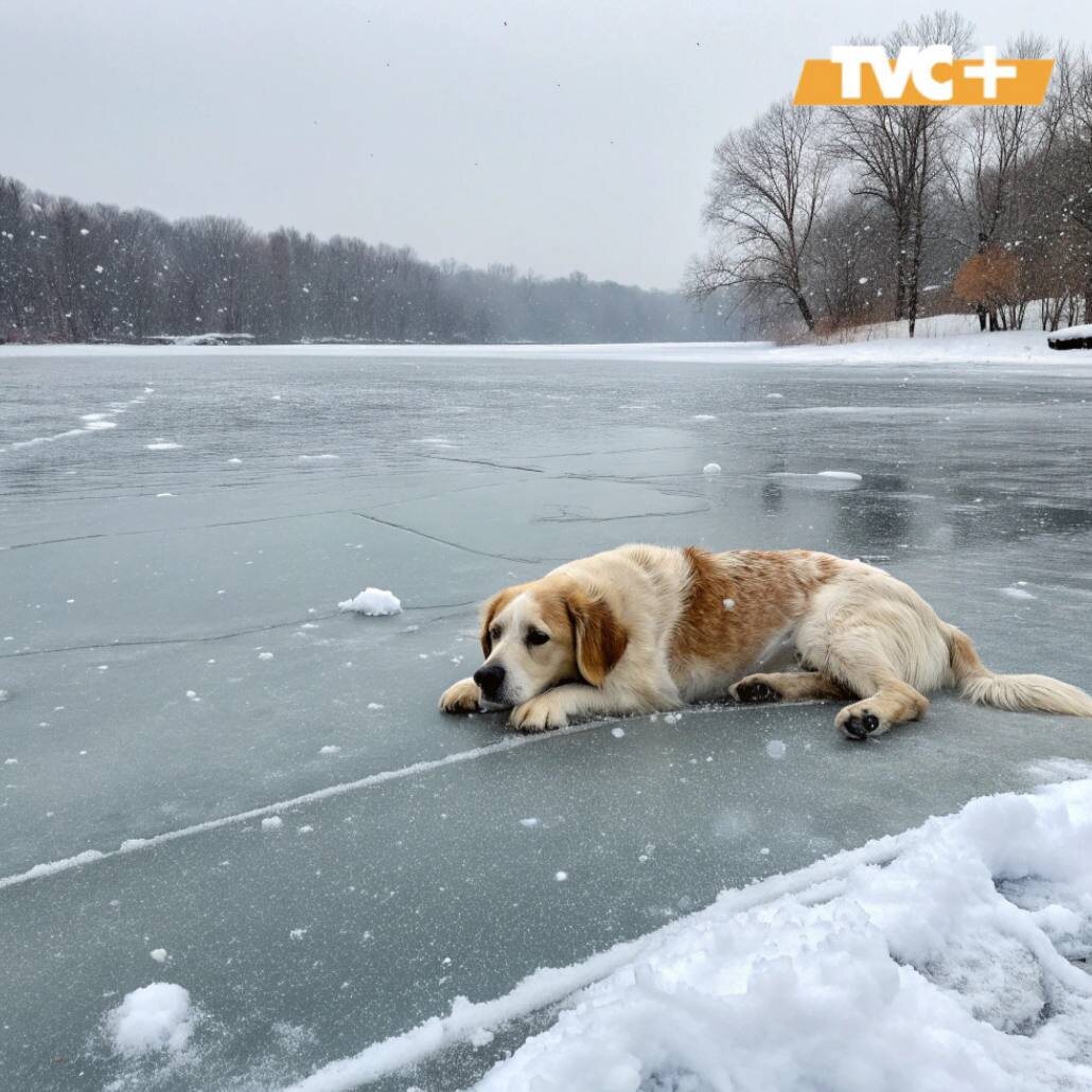 Драматические кадры запечатлели момент, когда животное провалилось под лед замерзшего озера в Сент-Луисе.