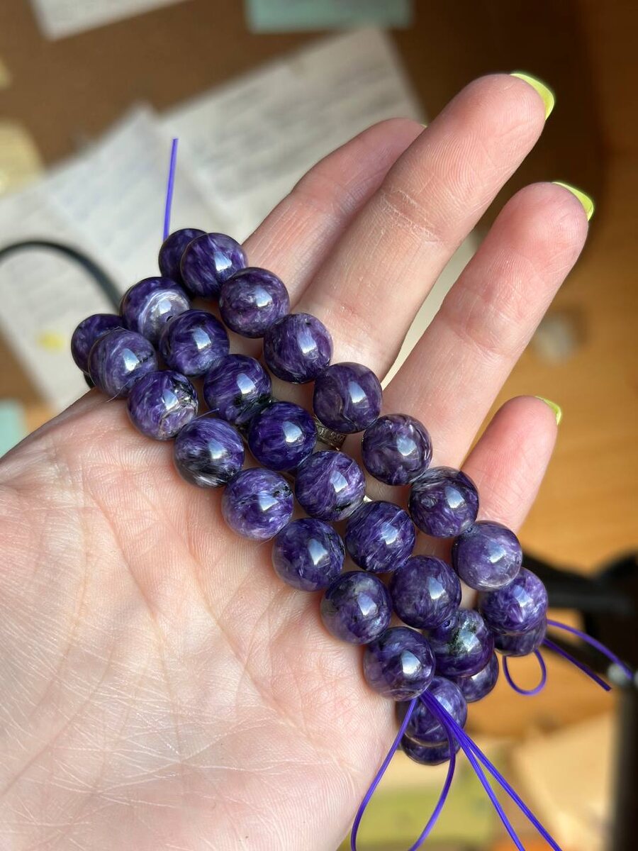 😍😍😍А вот и невероятный чароит подъехал))) ☝️🧐Кстати, я часто вижу вопрос о радиоктивности чароита. И вот, что могу сказать, на основании огромного количества статей, которые я проштудировала: Миф о радиоактивности чароита — разбор по фактам Вокруг чароита действительно ходит устойчивый миф, что он радиоактивен и опасен для ношения. Разберёмся спокойно и по сути. Откуда взялся миф 1. Редкость и «инопланетный» вид Чароит — уникальный минерал, добывается практически в одном месте в мире (Якутия). Его сложная формула и необычный узор породили много домыслов. 2. Путаница терминов В некоторых источниках упоминается, что чароит может содержать следовые количества элементов, связанных с радиоактивными рядами (например, торий). 👉 Важно: следовые ≠ опасные. 3. Интернет-перепечатки без проверок Один неверный тезис разошёлся по блогам и форумам без ссылок на измерения. Что говорит наука и практика ✔ Чароит не является радиоактивным минералом Он не входит в список радиоактивных или поте