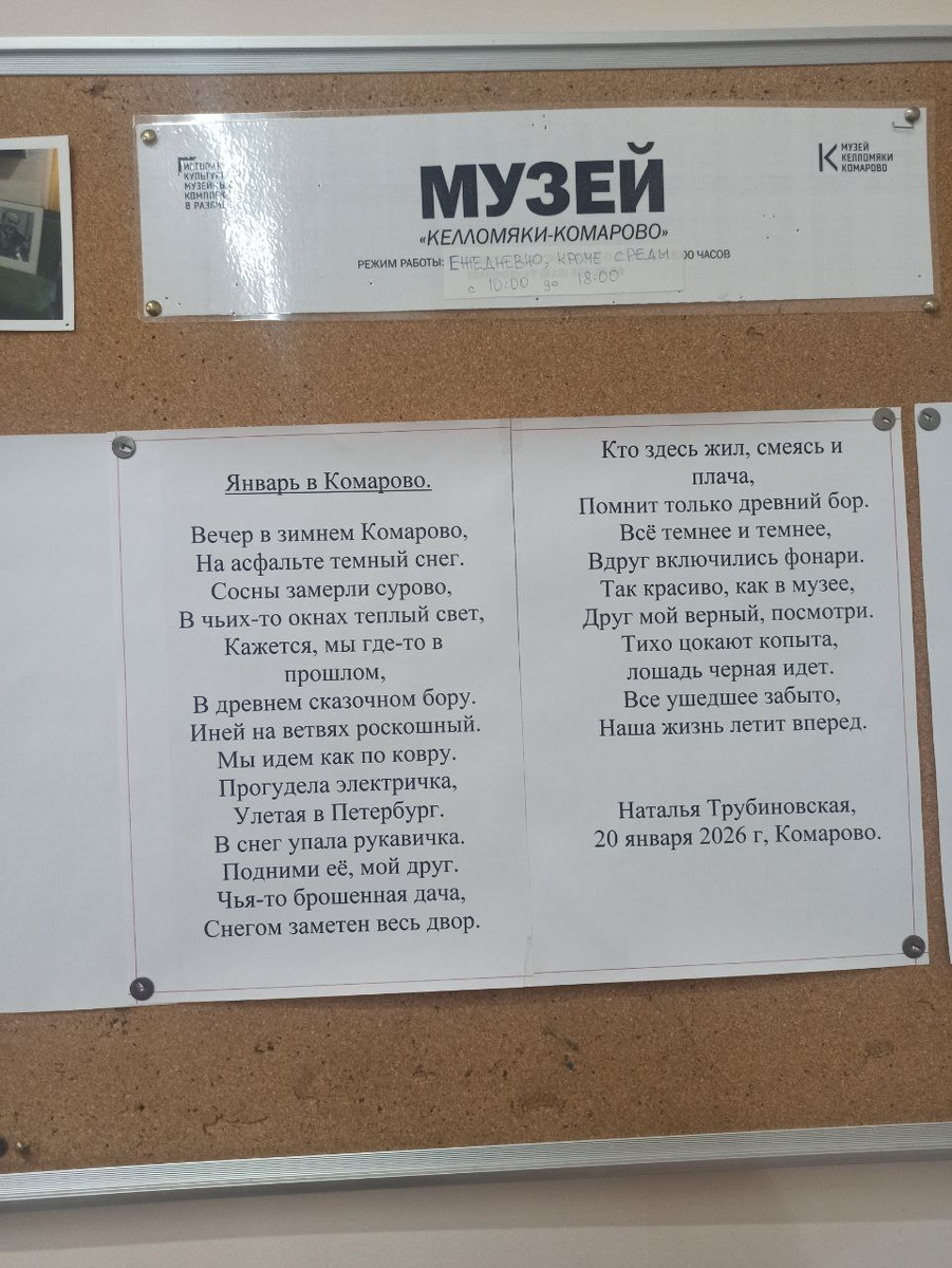 Те, кто меня давно читают, знают, что зимой я люблю на моря летать. А в этом году случилось нечто странное. Я активно собиралась в Арабские Эмираты, уже присмотрела отель, в котором меня все устраивало по соотношению цена и качество. (Около 110 тысяч на двоих за неделю). Но тут мы между делом решили с подругой съездить в зимнее Комарово. Нам с ней очень там все понравилось. Кстати, я там сочинила стихотворение и его даже на доске в доме отдыха повесили: В общем, так нам понравилось в Комарово, что я призадумалась вообще - хочу ли я в эти Эмираты. Ибо я отдохнула лучше, чем на море. Спокойно, расслаблено. Плюс еда у нас лучше и привычней. К дому близко, прекрасная творческая атмосфера, сосны, Финский залив. А, главное, стоит все это удовольствие намного дешевле. Кончилось тем, что мы с подругой тут же, не отходя от кассы, купили еще одну путевку. Поедем в мае на неделю отмечать ее день рождения. Правда, в другое место, но тоже на Финском заливе, и от той же организации. А у меня е