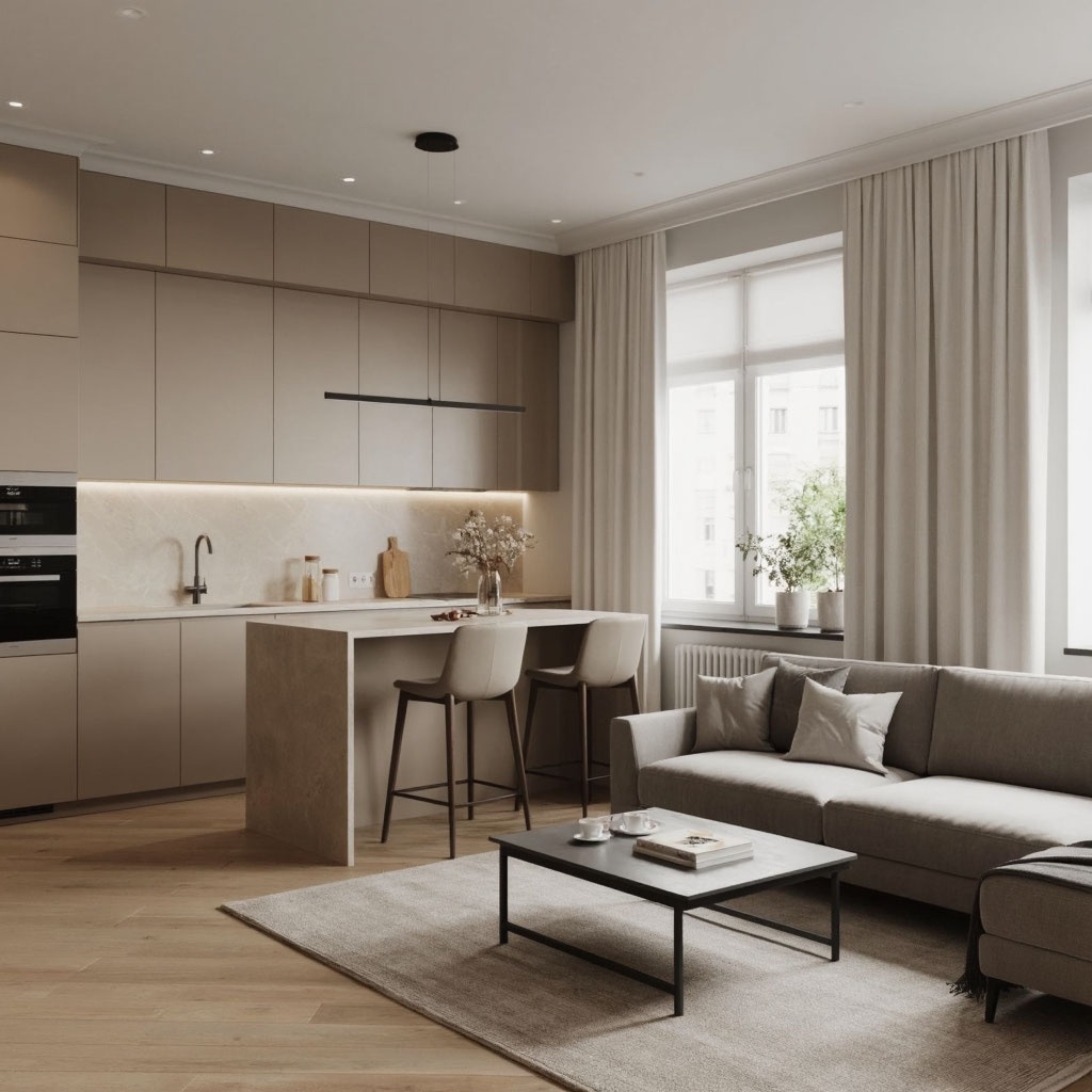 История заказчика. К нам обратилась молодая семья из Новосибирска, купившая студию в новостройке. Их мечта столкнулась с суровой реальностью малогабалетного жилья: всего 28 квадратных метров на всех, отсутствие личного пространства и постоянное чувство, что живешь в проходном дворе, где кровать стоит в центре всего. Они хотели не просто расставить мебель, а создать настоящее многофункциональное гнездышко, где будет комфортно работать, отдыхать, принимать гостей и укладывать спать ребенка, не испытывая при этом тесноты и хаоса. В одном помещении нужно было органично совместить четыре независимые зоны: спальню для родителей, гостиную для отдыха, рабочий кабинет и обширную систему хранения для всех вещей семьи. Ключевым требованием было сохранить ощущение света, воздуха и порядка, избежав впечатления захламленности. Каждый сантиметр должен был работать с максимальной эффективностью и эстетической отдачей. Разработанное решение. Мы предложили клиентам пойти не классическим путем, а создат