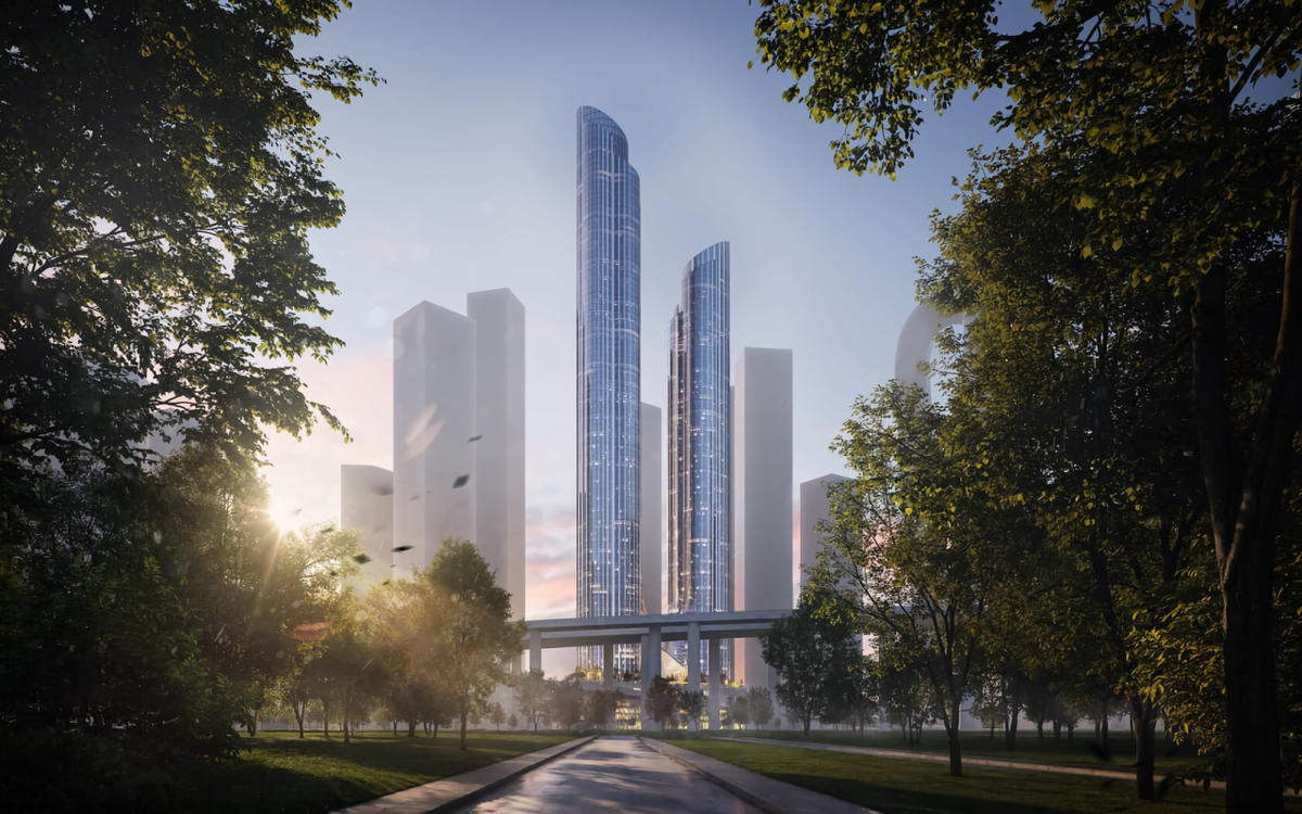Проект объединяет футуристичные жилые высотки от 90 до 200 метров, четыре башни апарт-отелей и офисный небоскреб высотой 350 метров. Первые этажи отданы под ритейл, социальные объекты и общественные пространства.