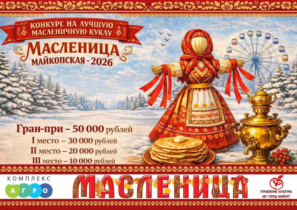 ✅Объявлен старт традиционного городского конкурса «Масленица Майкопская – 2026». Участвовать может каждый, возраст не имеет значения. Принимаются как индивидуальные, так и коллективные работы. Все авторы лучших работ получат дипломы, подарки от организатора и специальные призы от партнеров. 🤩Финальное событие: 22 февраля 2026 года в городском парке культуры и отдыха развернется большая выставка кукол. В программе: концерт, народные гулянья и торжественное награждение победителей. Провожайте зиму ярко и с пользой!👏🏻