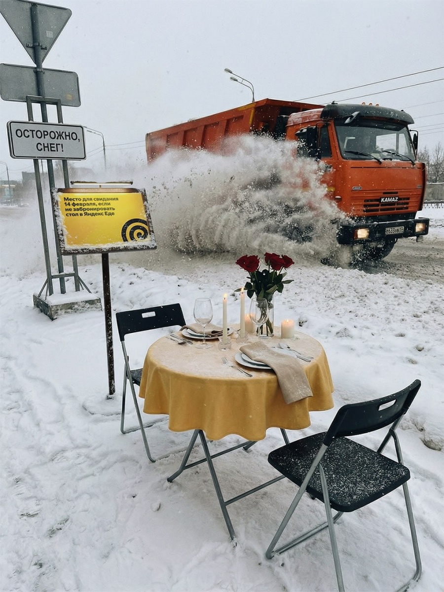 Ко Дню всех влюбленных в Москве появились необычные инсталляции — импровизированные места свидания для тех, кто не успел забронировать столик в ресторане. Таким креативом нас сегодня заставила улыбнуться Яндекс Еда. 😀 Пожалуй, лучший телеграм-канал о маркетинге