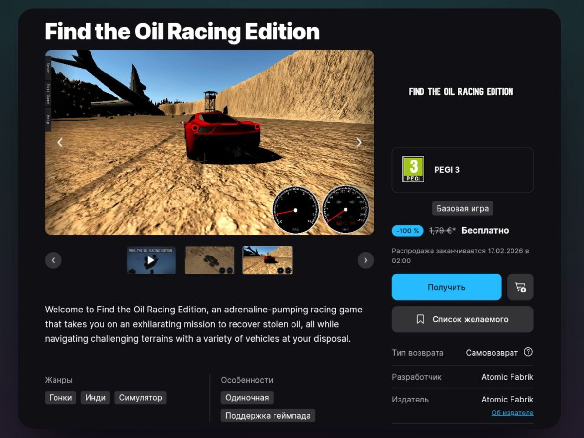 Забрать можно: • Find the Oil Racing Edition — инди-гонка, в которой вы отправляетесь в увлекательное путешествие по поиску украденной нефти. Раздача продлится до 17 февраля. #EpicGames Бустануть канал @Osiluwys | Игры и кино