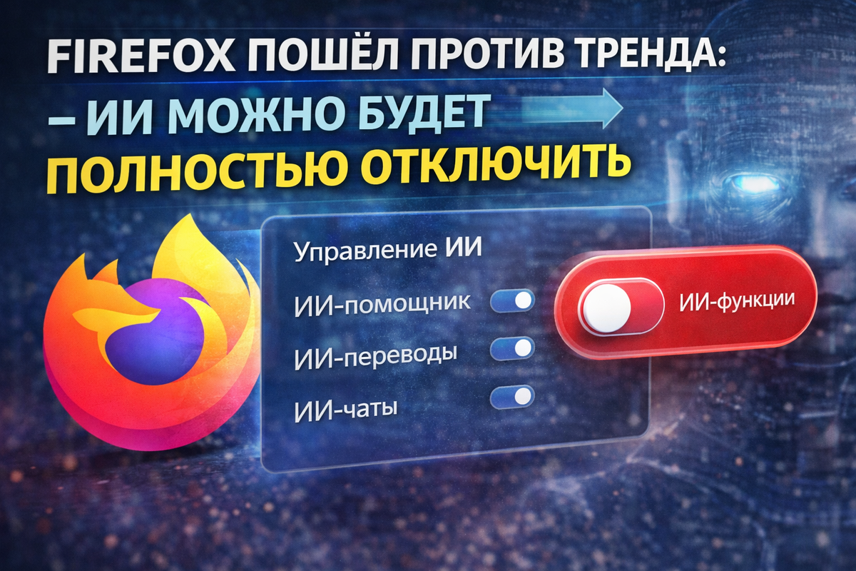 Пока крупные IT-компании наперегонки встраивают искусственный интеллект во всё подряд, Mozilla делает редкий для отрасли шаг — даёт пользователю право выбора. С 24 февраля в Firefox появится новая настройка, которая позволит полностью отключить ИИ-функции браузера. В меню настроек Firefox появится раздел «Управление ИИ». Через него пользователь сможет включать или отключать: То есть не «частично», не «где-то в фоне», а целиком. На фоне Edge и Chrome, где ИИ всё глубже вшивается в интерфейс без возможности полного отказа, это выглядит почти революционно. В прошлом году Firefox тоже включился в ИИ-гонку. Среди новинок появилась функция «встряхнуть для краткого обзора» — на iPhone она позволяет получить ИИ-сводку прочитанного в интернете. Кроме того, компания начала тестировать так называемое «окно ИИ» — отдельный интерфейс с помощником и чат-ботом для поиска информации. Но реакция части аудитории оказалась жёсткой. Пользователи прямо говорили: