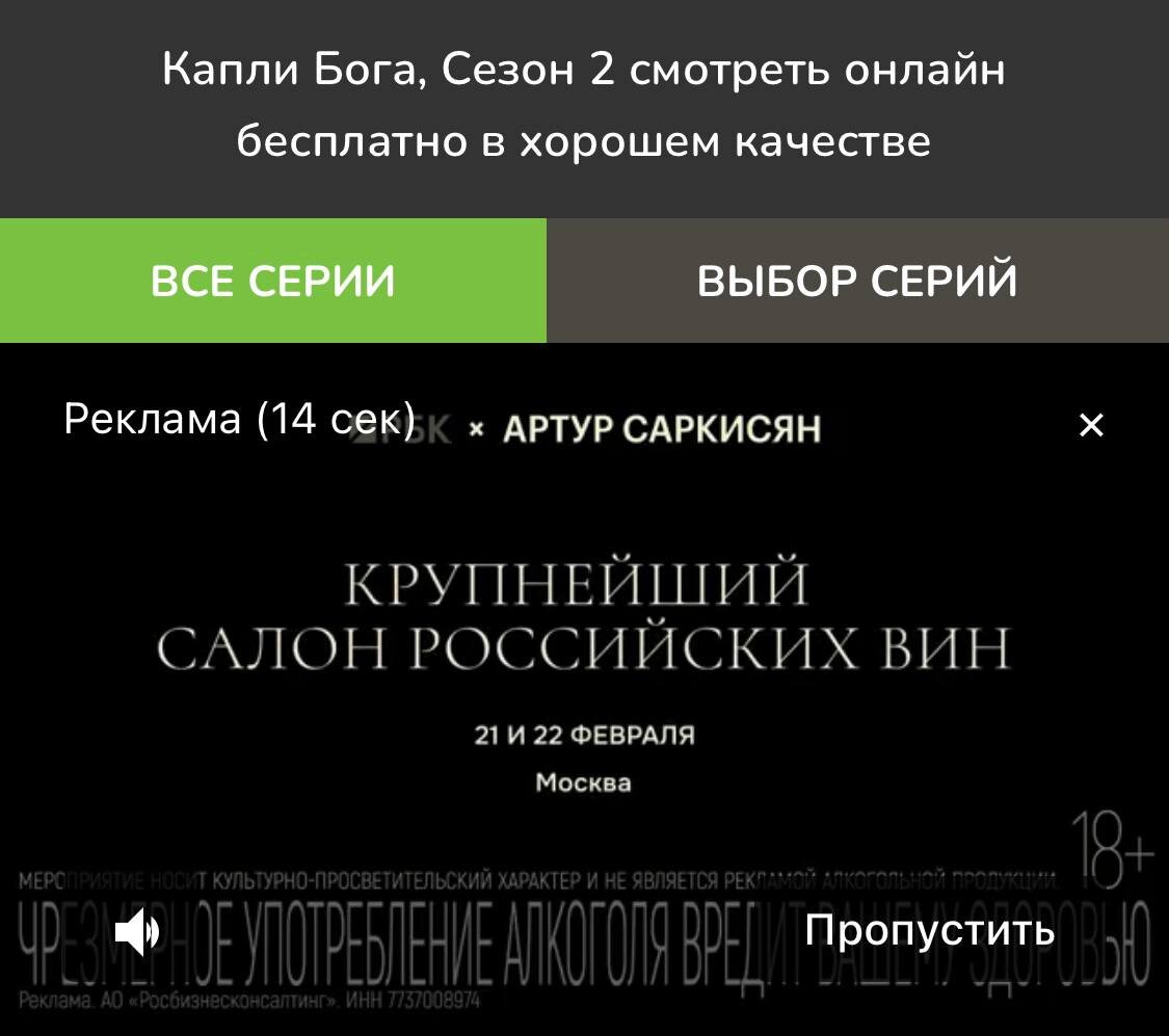 Всячески восхищаюсь размещением в онлайн-кинотеатре. Че, бабки некуда девать? Если я так полюбилась таргетологу, мог бы написать на заставке что-то типа: Санечка, раз ты смотришь фильмики на пиратке, будь добра, купи уж билет на салон, не жмись, вот те промокод -50% Клянусь, я бы последнее отдала #этотвашмаркетинг