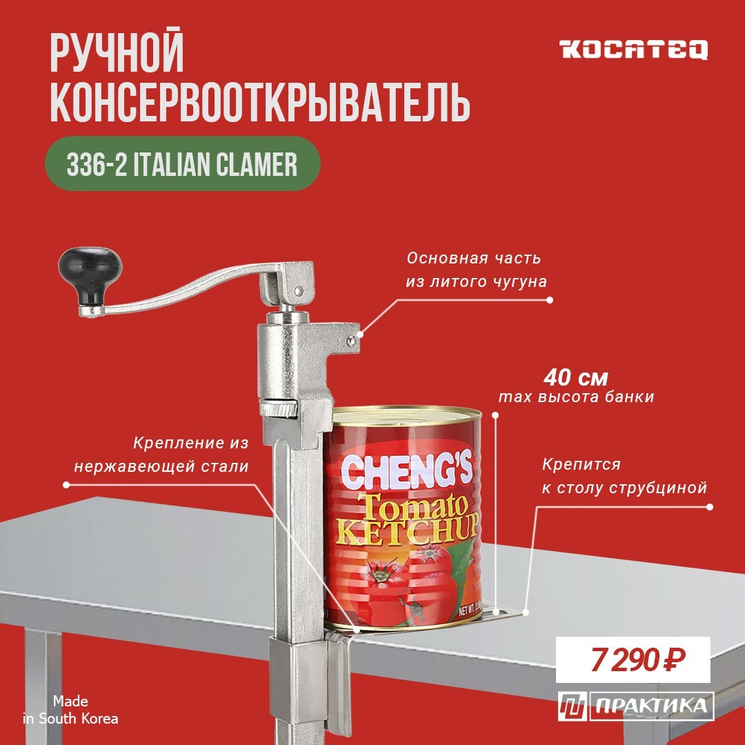 Снова в свободной продаже консервооткрыватель KOCATEQ 336-2 ITALIAN CLAMER. Устройство имеет удобное крепление через струбцину, а не на саморезы, как это иногда бывает в других моделях, предназначено для банок высотой до 40 см. Основная часть из литого чугуна, крепление из нержавеющей стали. 🔘 7 290 ₽* *Цена актуальна на момент опубликования https://pectopah.ru/catalog/inventar_stolovye_pribory/kukhonnyy_inventar/68764/ Не обращайте внимание на статус "под заказ" на сайте, он обновится в течение сегодняшнего дня. ◽️pectopah.ru ◽️zakaz@pectopah.ru ◽️Whatsapp ◽️+7 (495) 921-39-86 🤓 Подписывайся на Pectopah.ru