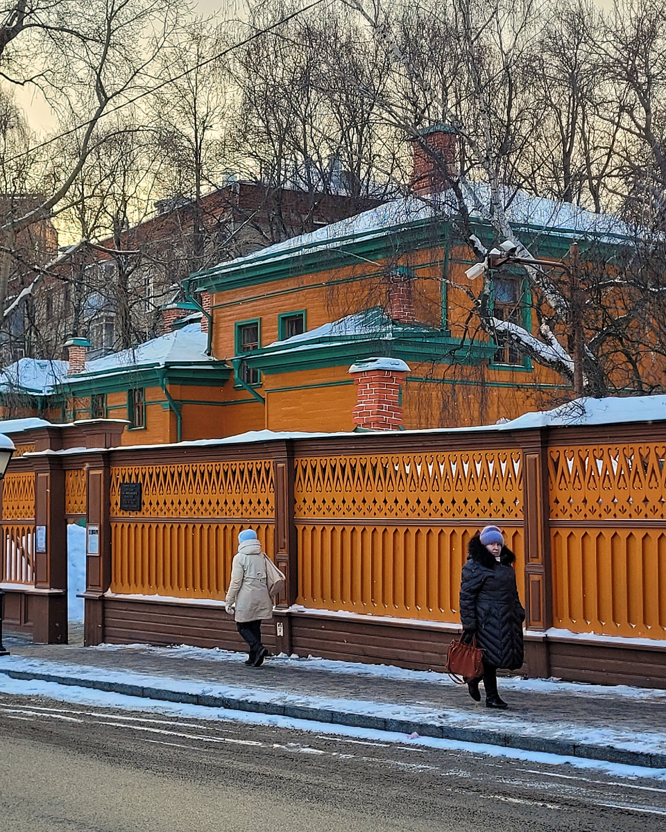 «Не нужно дома. Я вижу сад». Лев Николаевич Толстой приехал в Хамовники поздно вечером — смотреть усадьбу. Уже было очень темно, и хозяин переживал, что ничего не видно. А писатель-покупатель даже в потёмках увидел самое главное для себя — много-много зелени. ...«присмотрел он тогда дом Арнаутова с большим садом в Хамовническом переулке, и очень прельстился простором всей усадьбы, более похожей на деревенскую, чем на городскую». Место напомнило Толстому нежно любимую Ясную Поляну, которую ему так не хотелось покидать. ...в холода жить в Москве. Ей хотелось светской жизни, хотя официально причина была другая — чтобы дети могли учиться. Ну а куда было Льву Николаевичу деваться — пришлось согласиться. В итоге 19 лет подряд зимовала семья вот в этой усадьбе. И это были очень счастливые годы. ...писал Толстой — Каждое утро в 5 часов слышен один свисток, другой, третий, десятый, дальше и дальше». С трёх сторон усадьбу окружали ткацкие и парфюмерные фабричные здания, пивоваренный завод и обще